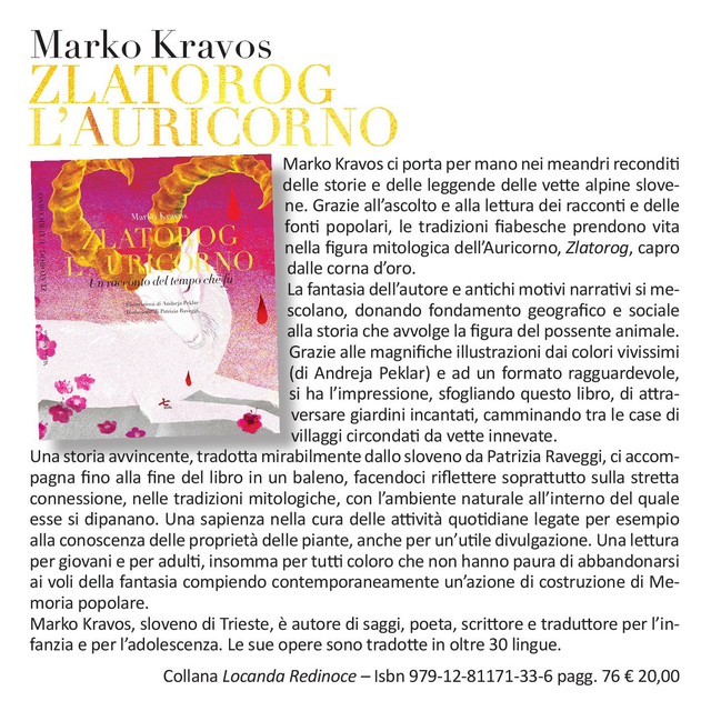 Marko Kravos, "Zlatorog, l'Auricorno", qudulibri 2025 (trad. di Patrizia Raveggi, ill. di Andreja Peklar)